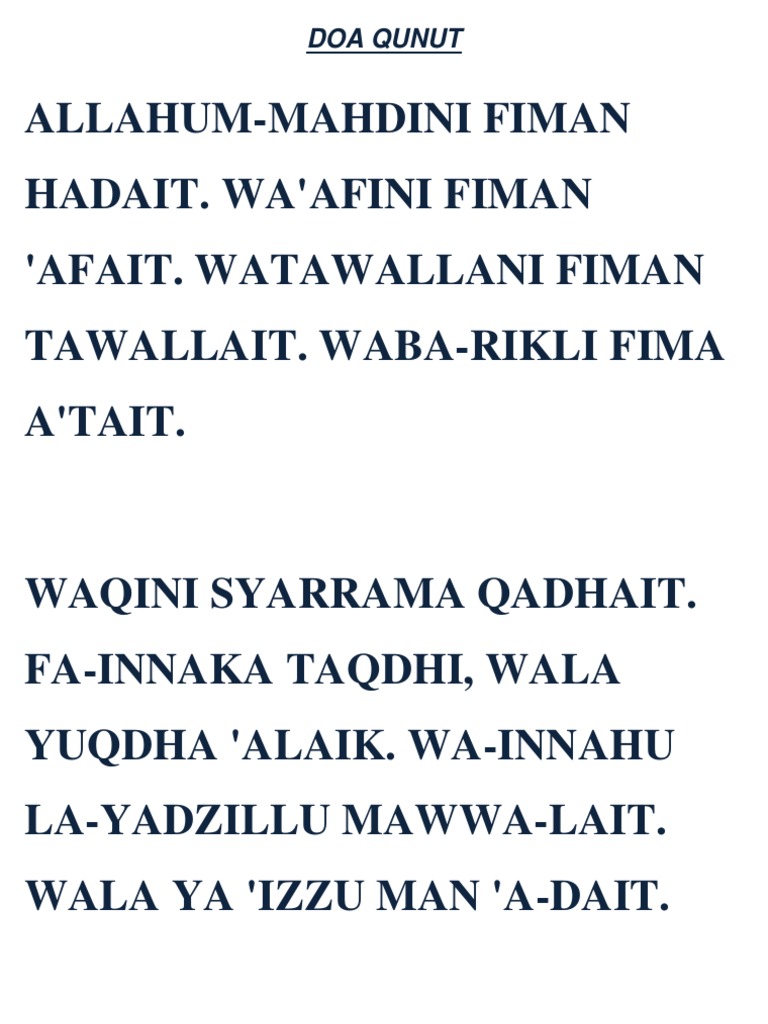 Panduan Bacaan Doa Qunut Subuh Dan Maksud Ejaan Rumi - Doa qunut with translation 1.0 free download.