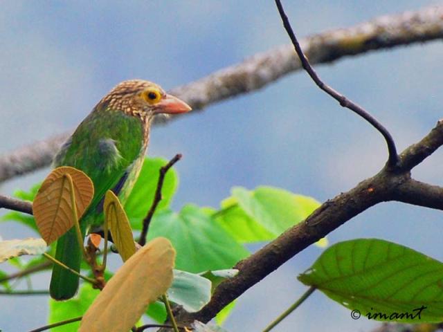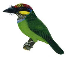 Ciri Khas Burung Takur Api Dan Perilakunya Di Alam Liar - Tubuh berukuran burung takur bultok agak besar (29 cm), kepala pucat, bercoret, burung ini berbulu utama umumnya hijau.