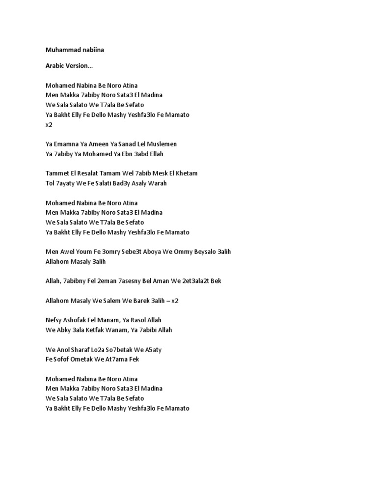 Muhammad Nabina Lyrics Download - Muhammad nabina (محمد نبينا) naat with lyrics with english translation mohamed nabina arabic naat with arabic lyrics and.